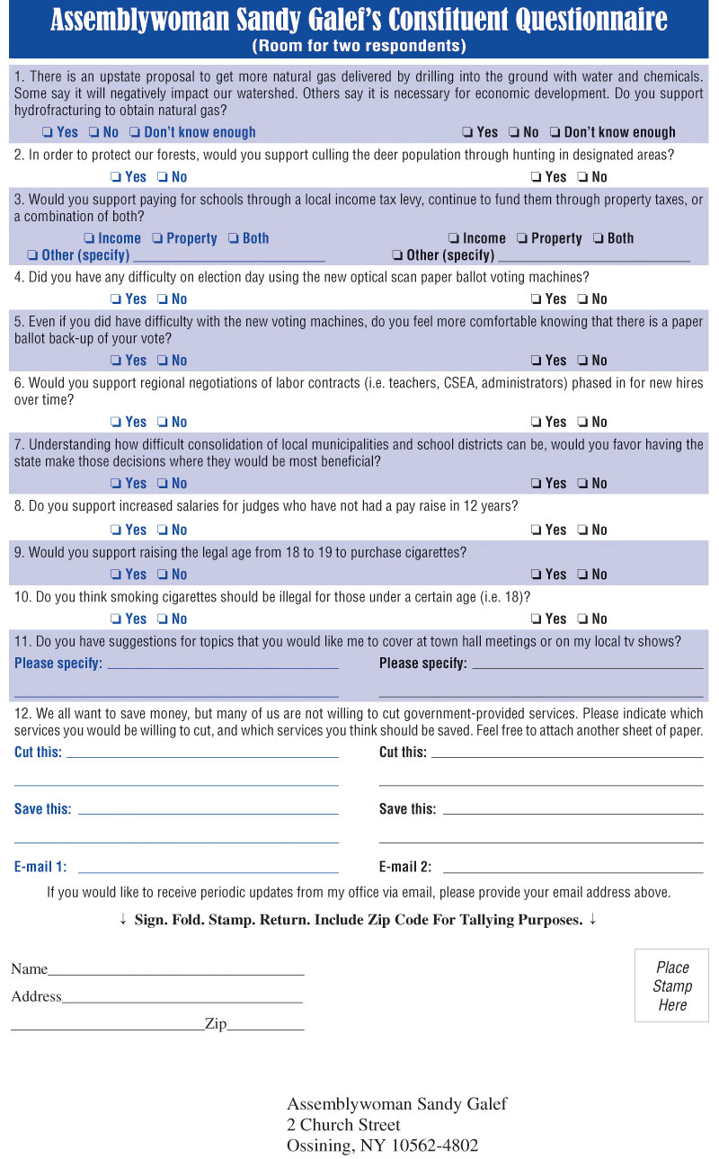Become a Facebook Fan of mine. Visit my fan page by searching for Sandy Galef on Facebook. I also encourage you to visit my webpage on the NYS Assembly website. To see all the bills I sponsor, archives of press releases and publications such as newsletters, links to my committees, and more about issues on which I am working.