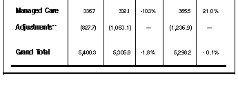 The constant policy growth rates found in Table 1 reflect current trends in the health care industry. The 2.8 percent decline in hospital inpatient spending reflects the continuing decline in the demand for inpatient services, as well as the impact of cost containment actions that have effectively prohibited the price of inpatient care from rising. The decline in demand for inpatient services is due to the continuing shift of service delivery from inpatient to outpatient settings, the improvement in the economy, the decline in the Public Assistance caseload, as well as the rise in managed care. While managed care growth has remained relatively flat in SFY 1996-97, growth is expected to rise in SFY 1997-98. Also contributing to the declining growth is the impact of cost containment measures placed on this sector over the past two fiscal years and the effects of a newly deregulated reimbursement system which should spur competition.